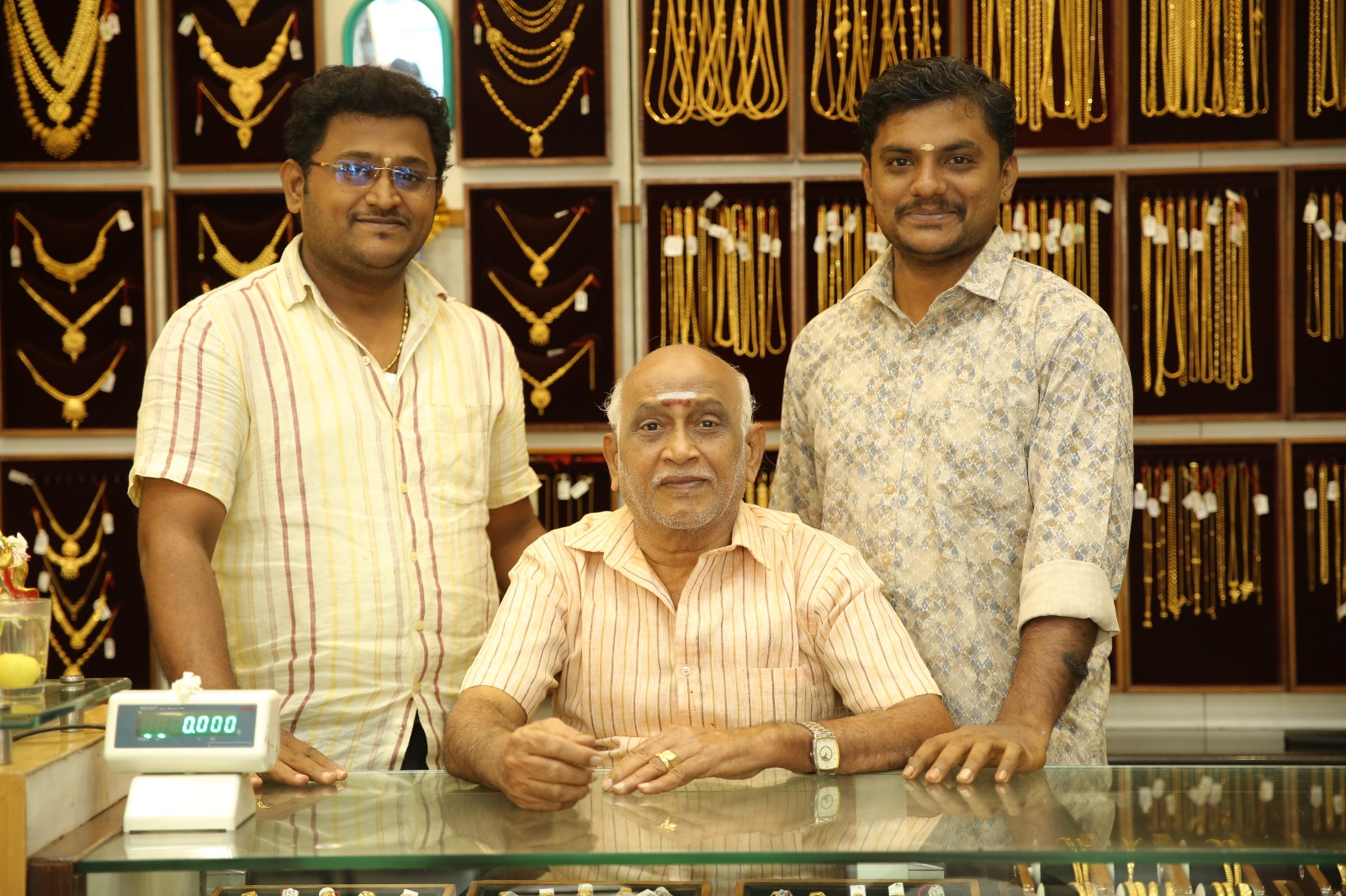 In 2008, a new chapter began when Mr. D. Vignesh Kumar, son of Mr. A. Dhanasekaran, completed his undergraduate studies and joined the family’s jewellery business with passion and vision. By 2009, we had expanded into a new rented showroom of 130 sq. ft. at Thottiyan Kinaru Street, marking the beginning of a new era.